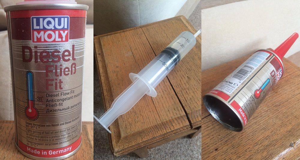 Liqui Moly Diesel Fliess-Fit K – одно из лучших средств («антигель», которым можно промыть форсунки дизельного двигателя). Это депрессорная присадка, рекомендуемая для использования в дизельных автомобилях, которые эксплуатируются при температурах до -31 градуса, благодаря способности предотвращать сращивания парафиновых кристаллов, образующихся в солярке при небольших температурах. Очиститель не застывает и продолжает циркулировать по системе, выполняя возложенную функцию, обволакивая застывающие на холоде частички парафинов в дизтопливе и не давая образовываться «тромбам».