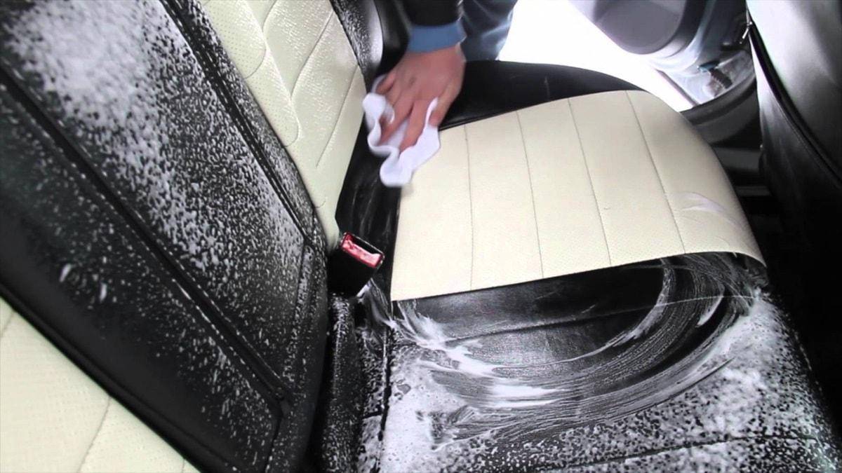 Следующая стадия – это сидения, их можно предварительно замочить в пенном растворе или залить спреем. Если имеются особо сильные загрязнения, то можно пройтись щеткой. Тоже самое можно проделать и с ковролином. Кресла из кожи и кожзама считаются более деликатными, поэтому к их очистке стоит подойти с особой внимательностью. Щетки придется отложить в сторону и воспользоваться тряпкой или губкой вместе с хозяйственным мылом.