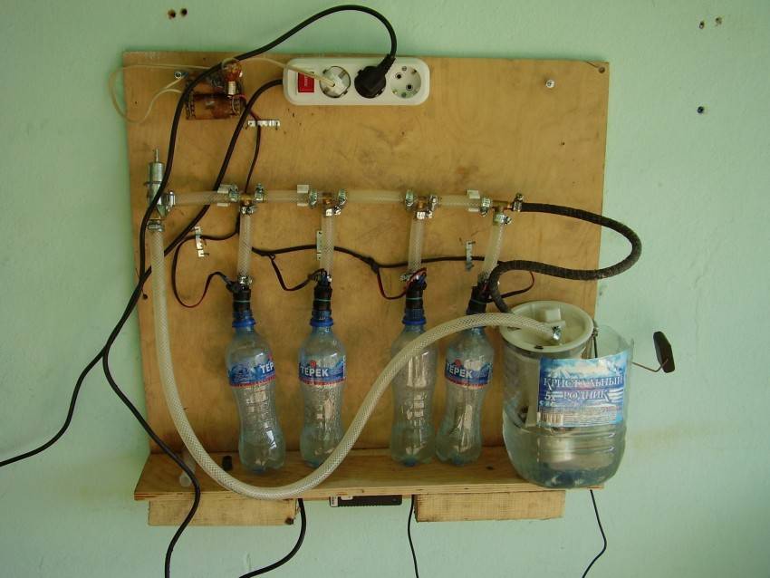 - После этого подсоединяем трубку нашего самодельного прибора и затягиваем концы при помощи хомутов. Делать это нужно надежно иначе под действием давления может произойти несчастный случай.