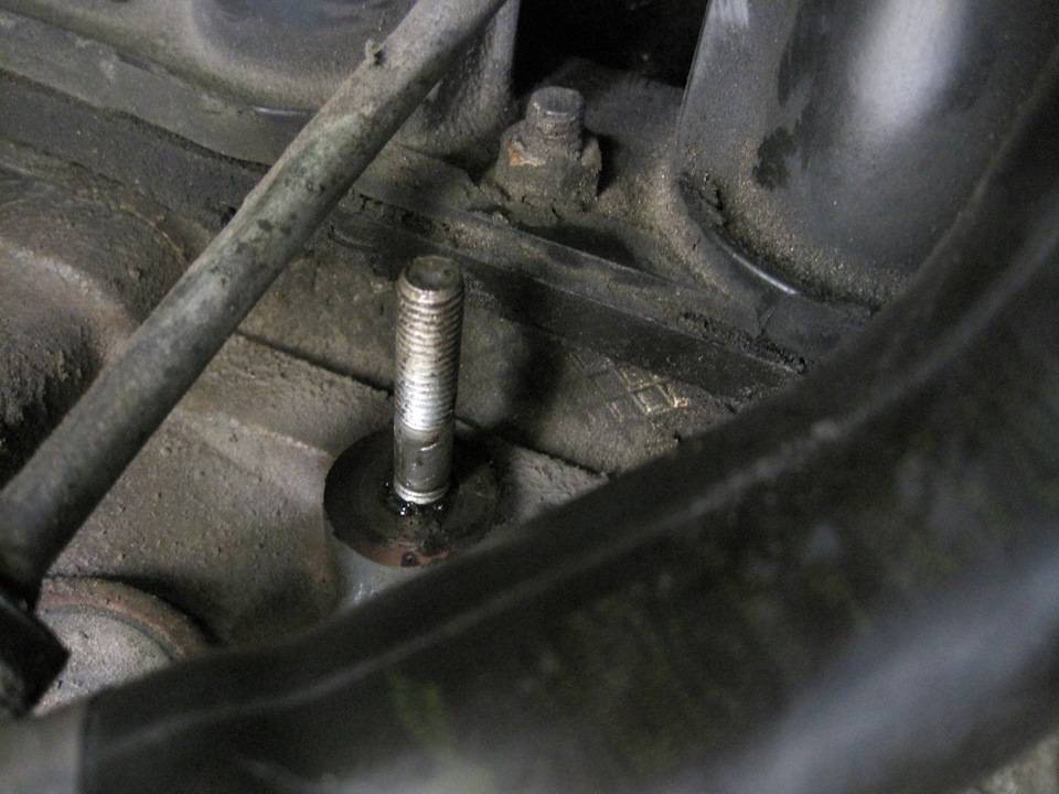 Завинтил шпильку в блок. Шпильковерта у меня нет, как смог затянул сбоку узкокубцами.