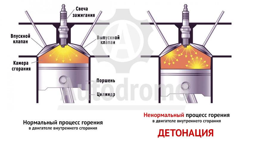 Своеобразие силового агрегата также может быть причиной образования детонации. На процесс ее образования влияют: