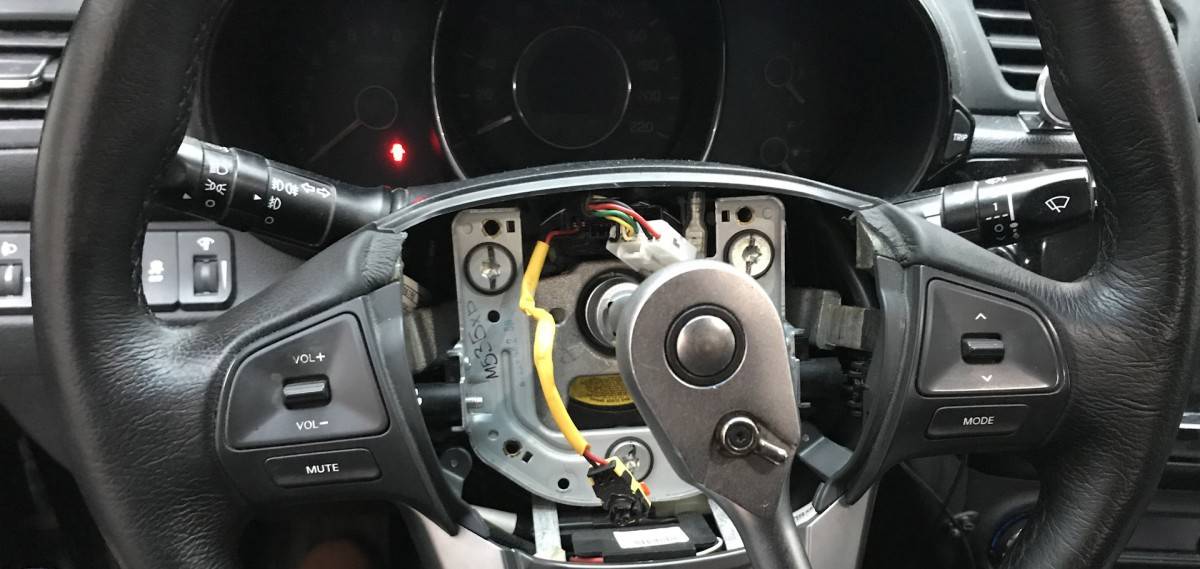 Первым шагом является демонтаж руля. Потребуется предварительно снять клеммы с аккумулятора. Если автомобиль снабжен полушкой безопасности, то необходимо подождать минут пять, а затем снять руль. При демонтаже руля рекомендуется следовать инструкции по эксплуатации и ремонту машины соответствующей марки.