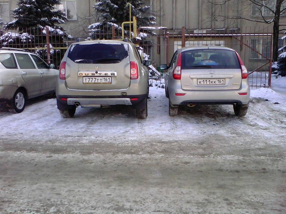 И причём калина на фото и при измерениях была обута в резину 185/65 R14 А Duster на колёсах 215/65 R16. Т.е. профиль колёс даёт дастеру преимущество в 19,5мм а диаметр диска в 50,8мм. Таким образом будучи обутыми в резину и колёса одинаковой размерности калина оказалась быВЫШЕ DUSTER на 60,3 миллиметра минимум.