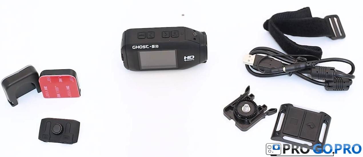 Кроме самой камеры, в состав входят крепления различной конфигурации и пульт ДУ, благодаря которому можно запускать и останавливать запись, а также изменять режимы съемки.