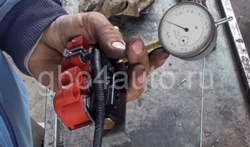 - Проверить наличие касания удлинительного штока и штока газового инжектора. Если стрелка прибора начинает двигаться то значит, что соприкосновение достигнуто.