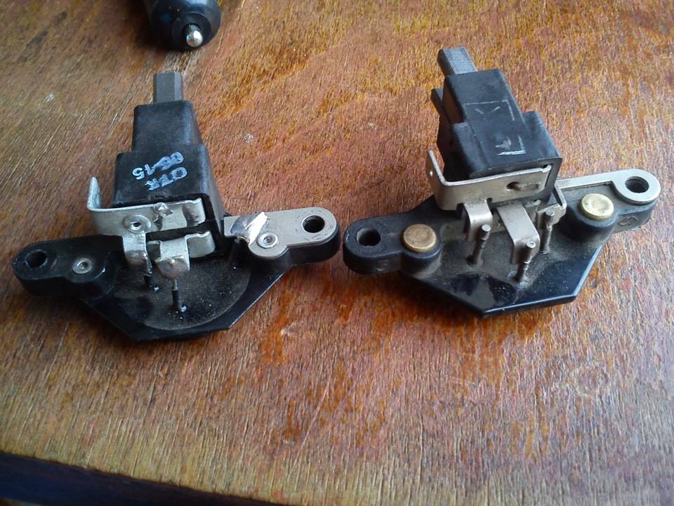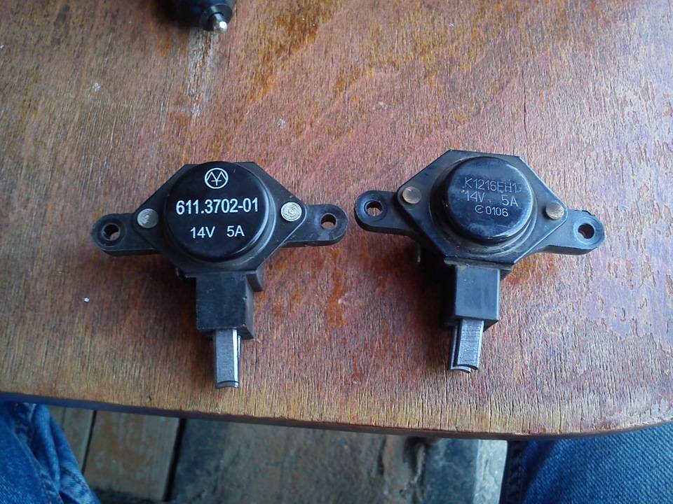 Затем снята крышка генератора, снят родной регулятор напряжения. Сравнение покупного и родного: