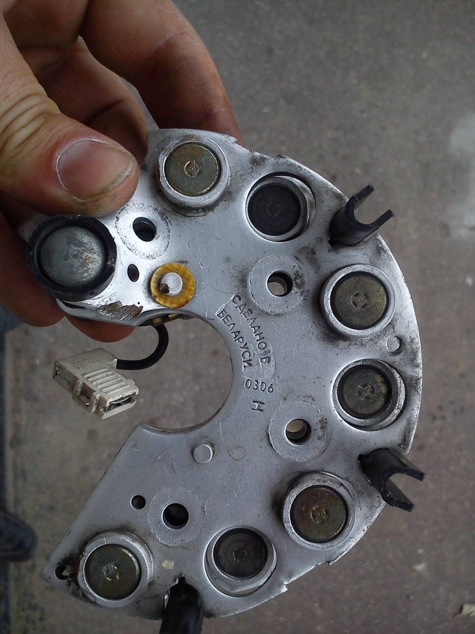 Вопросы: — Могли быть брак по совпадению и в новом диодном мосте и регуляторе 3-х уровневом? — Почему дидный мост так глючит (новый) но тестером всё идеально прозванивается? — Могло ли при скачках напряжения повредить чтото в блоке индикации и лампочка разрядки тлеет потому что с ней проблема а не с генератором?