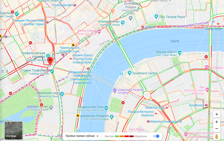 Сервис от «Яндекса» отлично работает в России, но для поездок в другие страны удобнее использовать Google Maps. Информация о пробках будет точнее, а карты — подробнее. В остальном сайты почти идентичны.