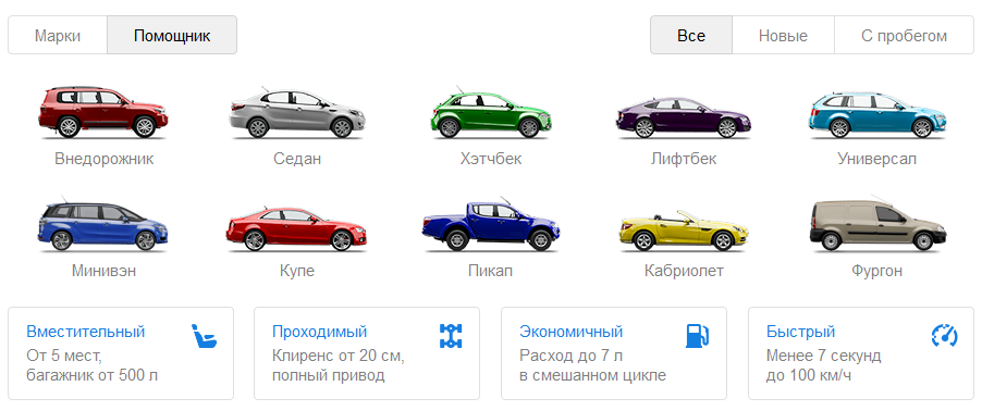 Правила изучены, испытания пройдены – осталось купить автомобиль. Конечно, auto.yandex.ru не единственный ресурс, где можно осуществить выбор, но по диапазону поиска и возможностям ему нет равных. Сюда стекается вся информация – как от жаждущих купить, так и от предлагающих свой товар.