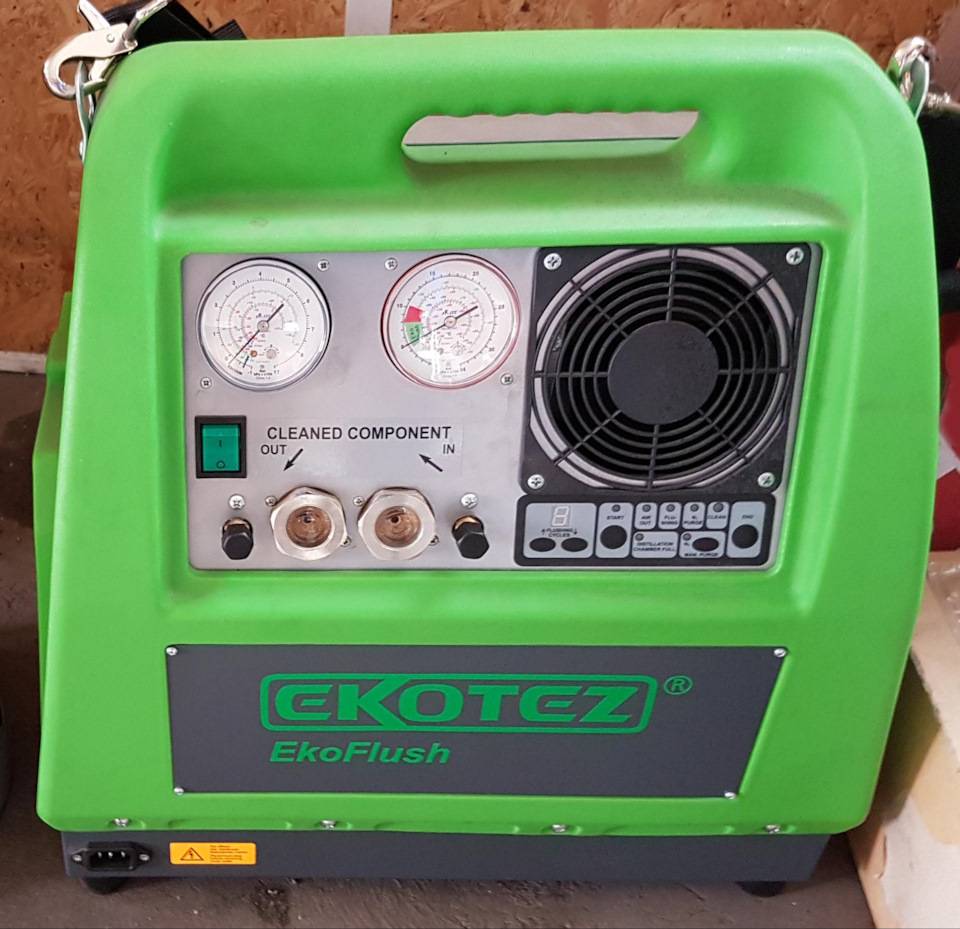 Для промывки важно использовать сертифицированные и одобренные производителями систем кондиционирования промывочные жидкости. Оптимальное направление потока — от конденсора к компрессору, то есть против естественного движения хладагента