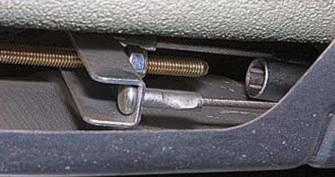 - В середине кузова обнаружить гайку на штоке от которой разветвляется тормозной трос.