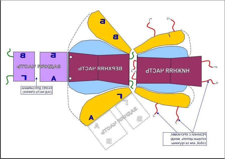 Обложки для заднего ряда обычно носят снизу. Удобнее для кого удобнее разбирать спину. Упаковывая дно, мы фиксируем под низу крючков или нитей. Затем мы надеваем верхнюю часть на спину, а сзади надеваем крючки.