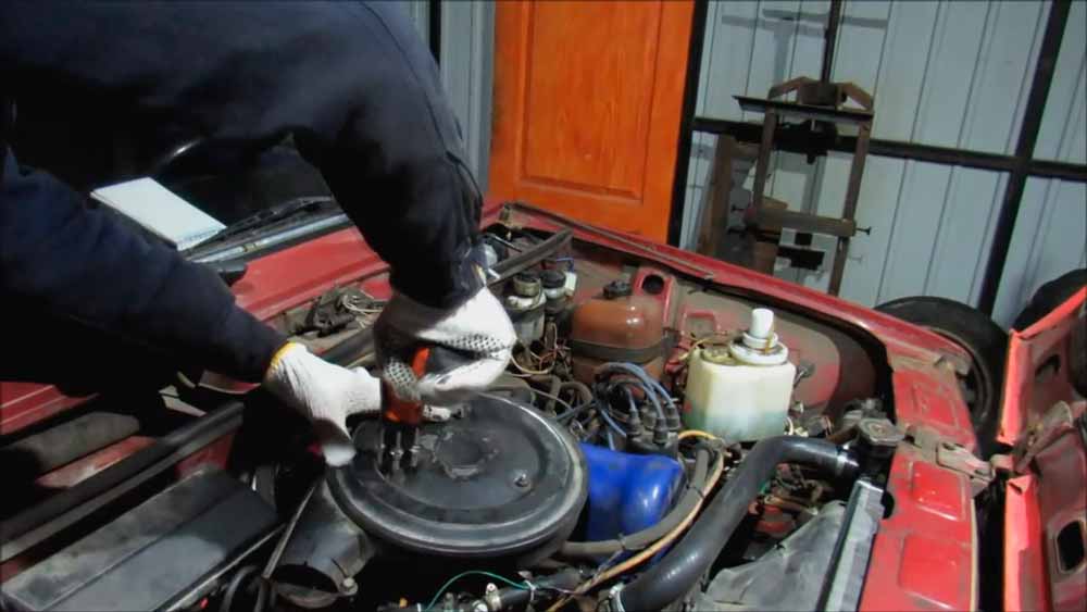 - Для начала необходимо демонтировать крышку трамблера, при этом высоковольтники извлекать не стоит.