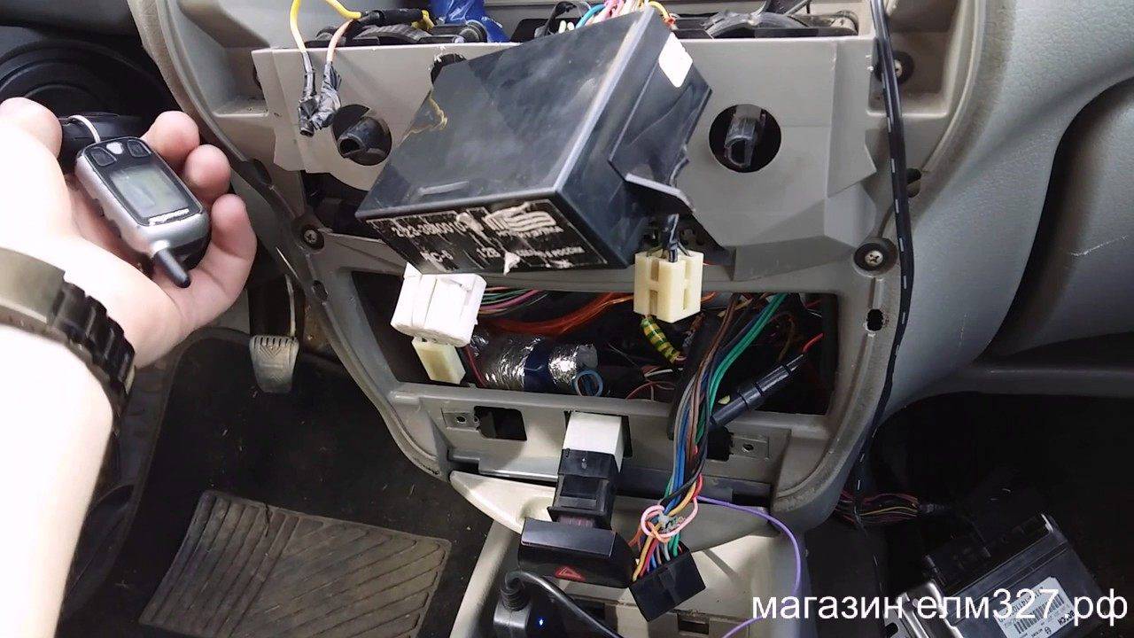 Установка сигнализации в Калине осуществляется после снятия панели приборов и разборки рулевой колонки, чтобы удобно было крепить тросы.