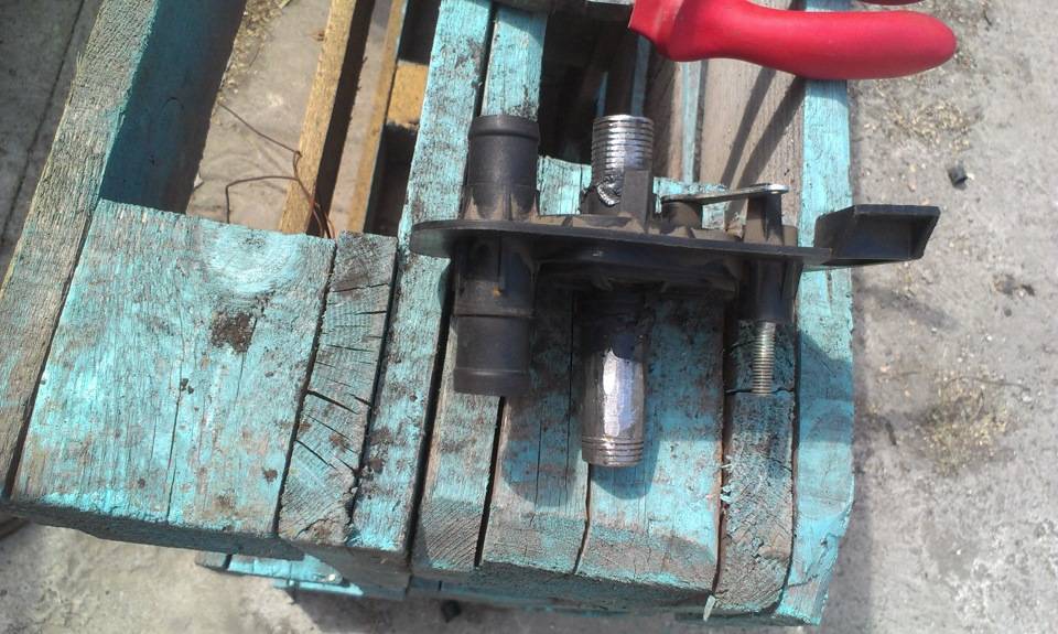 - Приспособить надежный латунный сантехнический вентиль или шаровой водопроводный кран. Главное – чтобы диаметр выводов приблизительно совпадал с диаметром шлангов на печке.