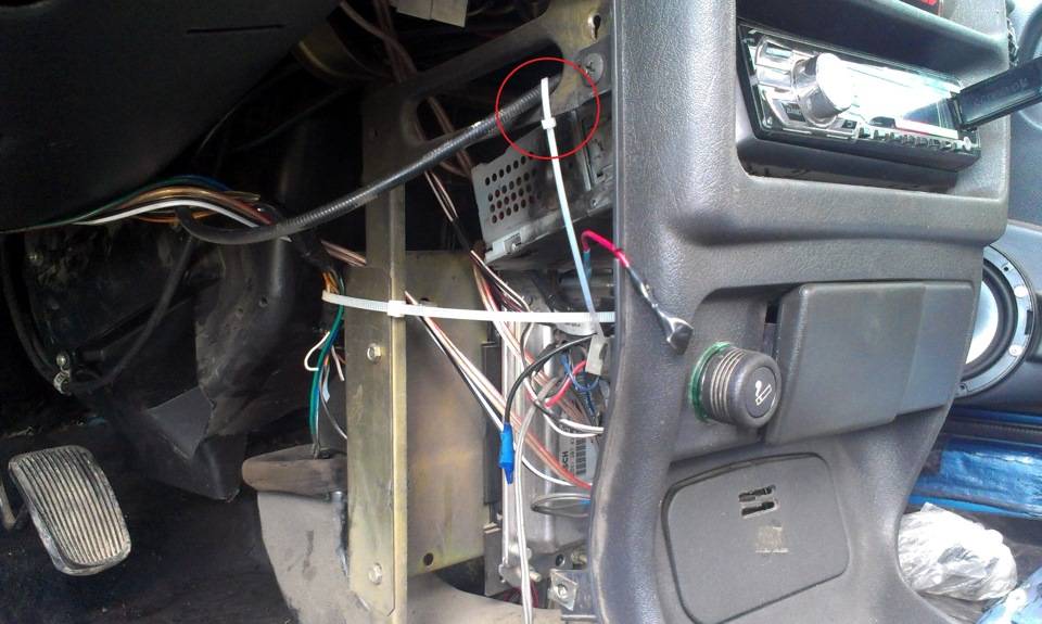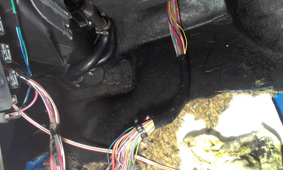 Чтобы он не мешался под ногами временно притянул его хомутом к панели. Когда буду собирать салон придумаю что-нибудь получше))