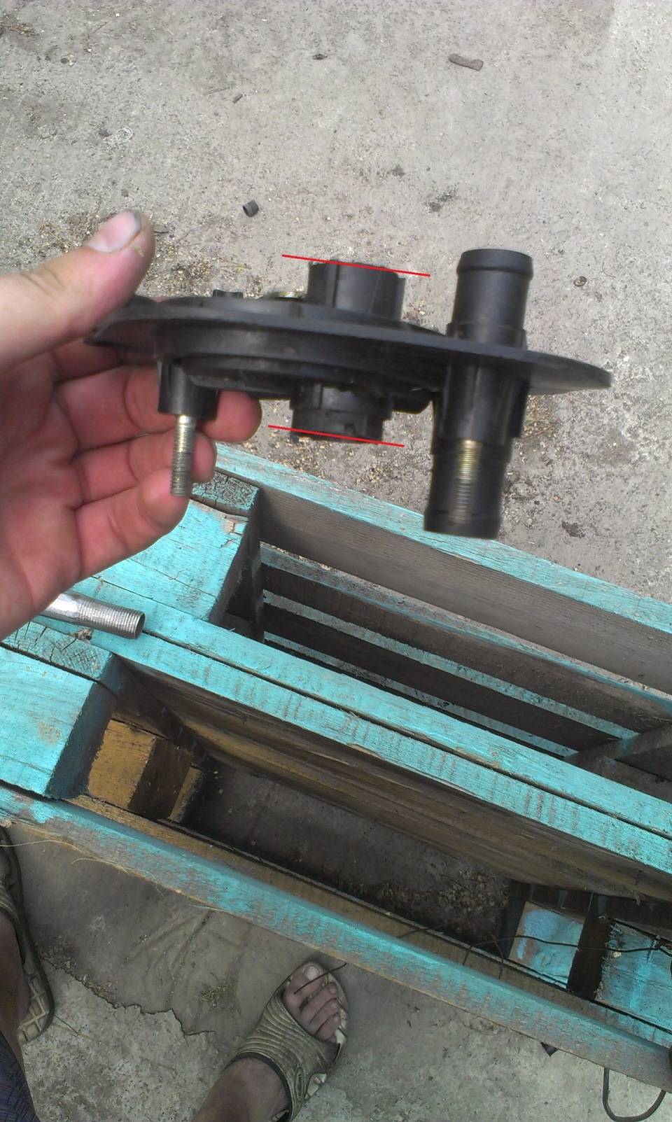 Новую манжету можно будет вырезать из автомобильной камеры (лучше от грузовика). Кран отопителя должен находиться в закрытом положении. Далее нужно вырезать по контуру крышки (верхней), проделав четыре отверстия для крепежей, по месту их расположения (по краям и в середине).