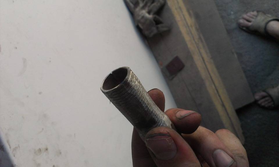 Короче провозившись полчаса, добился более-менее гладкой поверхности, сгладил резьбу и убрал острые края, чтобы в будущем при изгибах не порвало патрубки.