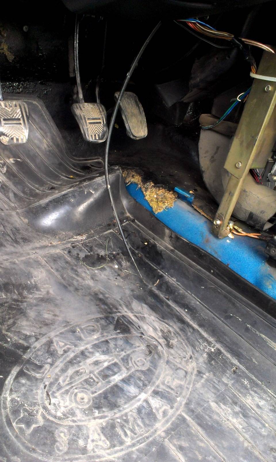 - Далее в салоне, со стороны переднего пассажира, нужно снять боковую накладку торпеды (выкрутить 5 саморезов) и убрать коврик, чтобы подобраться к кранику и его патрубкам.