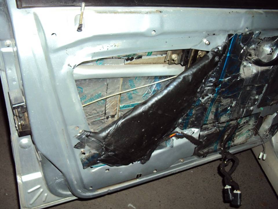 Первая, достаточно длительная и ответственная работа – снятие обшивки дверей. Для начала нам необходимо снять так называемую карту. Работу лучше начинать с передних дверей. Сначала при помощи крестовой отвертки вывинтите несколько саморезов по периметру нижней части двери (ниши для хранения). Для снятия обшивки потребуется отсоединить ручки стеклоподъемников, ручки открывания дверей. Разъедините контактные фишки