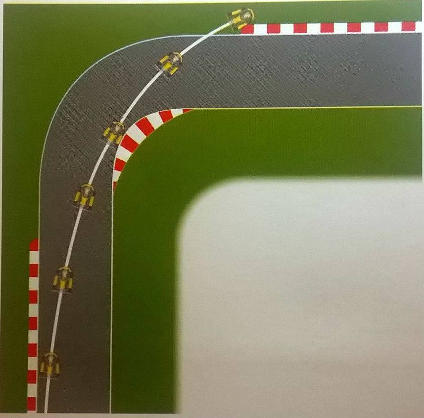 Оптимальная (с точки зрения вашей безопасности) траектория прохождения поворота это такая, когда она выполняется в пределах полосы движения без лишних манипуляций рулевым колесом.