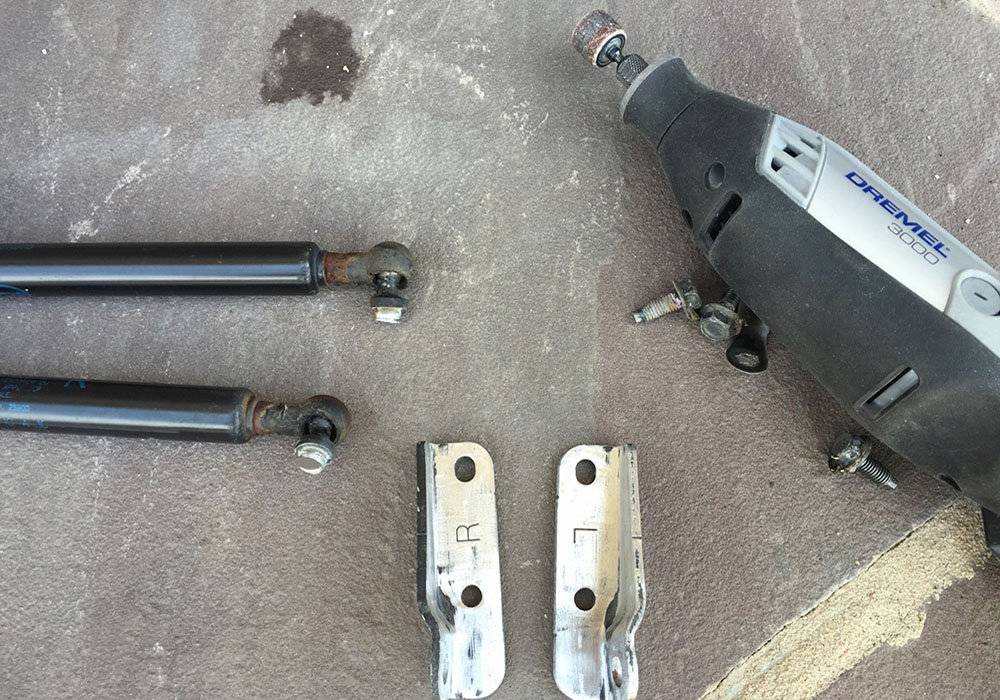 Этого списка вам волне достаточно для того, чтобы успешно заменить амортизаторы. Вам нужно закрепить крышку багажника с помощью страховочных упоров (подойдёт что-то из подручных материалов типа надёжного деревянного бруска, но обязательно с обоих сторон, полагаться на одностороннюю фиксацию нельзя!). Затем используйте зажимы – с их помощью мы сможете зафиксировать концы с шарнирами. Обязательно побеспокойтесь о надежности крепления.