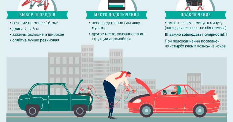 - используют в качестве донора авто с меньшей емкостью батареи;