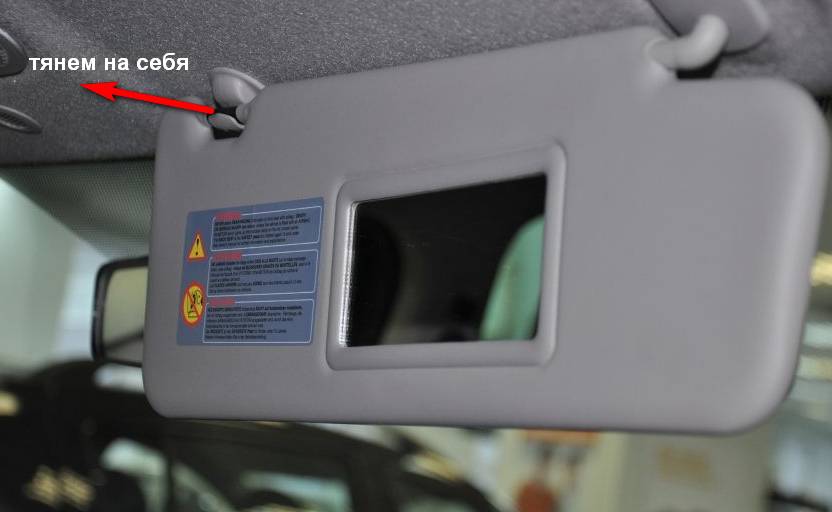 Солнцезащитный козырек можно использовать не только на лобовом, но и на боковых стеклах. Просто потяните на себя за край козырька, высвобождая его из фиксатора и поверните на боковое стекло. Теперь солнце не будет вам досаждать сбоку.