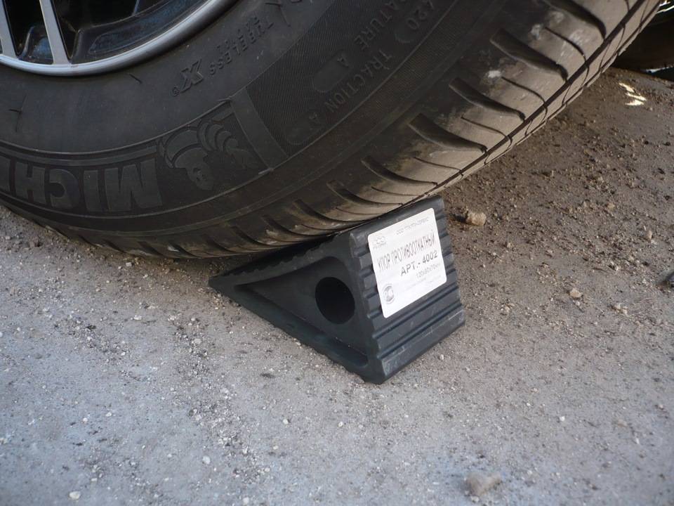 2. Устанавливаем противооткатные «башмаки» под передние колеса.