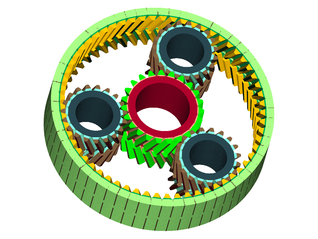 Планетарный редуктор. Состоит из нескольких планетарных передач.