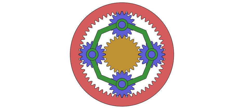 Каждая планетарная передача состоит из солнечной шестерни, водила с шестернями-сателлитами и коронной шестерни.