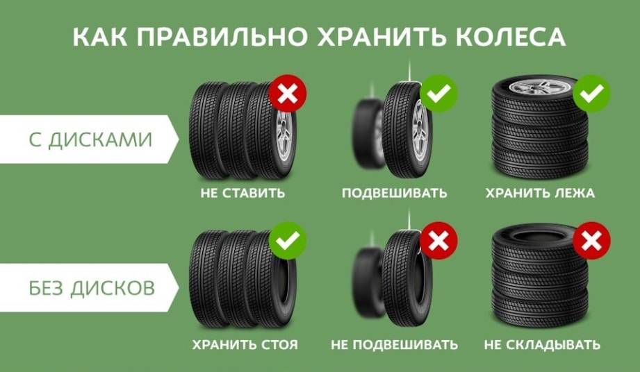 Такой способ сохранит физические свойства колеса, не допуская взаимодействия с внешней средой и ультрафиолетом. Колеса бортированного типа нужно накачать и подвесить на стены в сухом помещении без доступа солнечного света. Шины же нужно расположить в вертикальном положении либо стопкой.