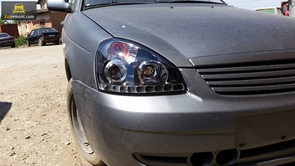 В ВАЗ как и в более современных моделях используется галогенная оптика для дальнего и ближнего света. Некоторые автомобилисты предпочитают модернизировать Приору за счет установки альтернативных фар. Мы рекомендуем придерживаться заводских рекомендаций.