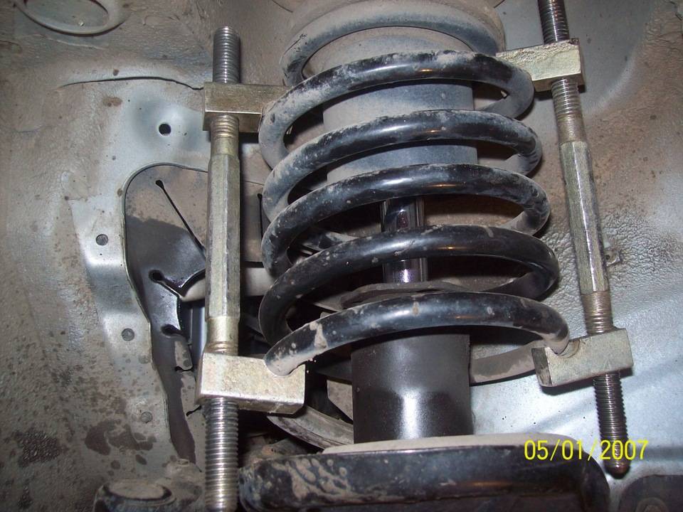 Одеваем съемники(жигулевские) пружин и сжимаем пружины
