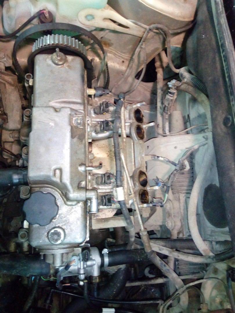 Увидев это, они начали все фотографировать, чтобы удалить голову. Воздушный фильтр, газовый кабель, любые мешающие трубы. Убрали вход, затем выход. Термостат. Шкив распределительного вала