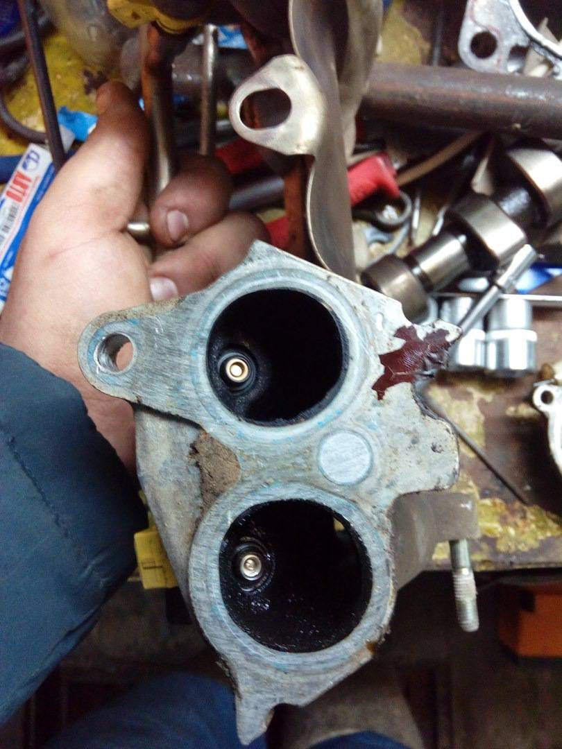 Выход отработанных газов из-под головки блока цилиндров
