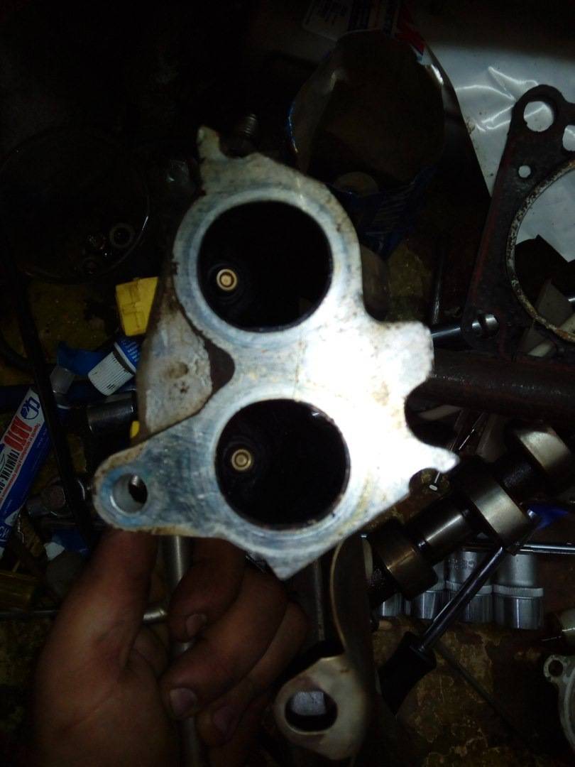 Кстати, у нас в голове калина, там 2 дырочки для тосола. По карбюраторным моделям такого двигателя идут в коллектор, насколько я понимаю. Потом из одного канала, что ближе к ремню ГРМ, потекла струйка тосола, так как сначала я подумал, что эта проводка плавится.