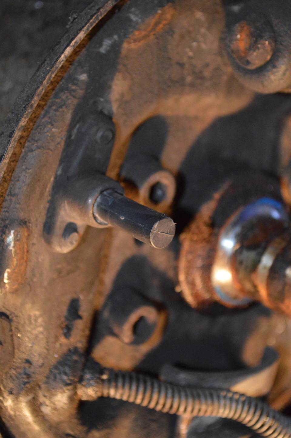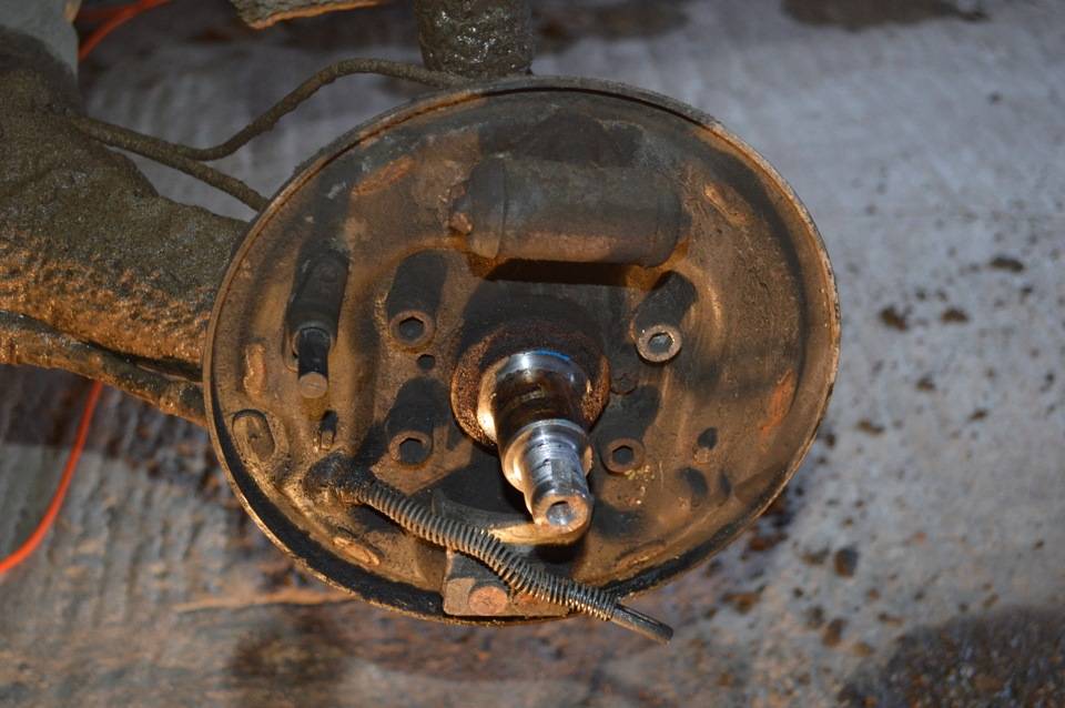 - суровое истирание покрытия передних тормозных колодок, которое находится при разборе тормозного барабана.