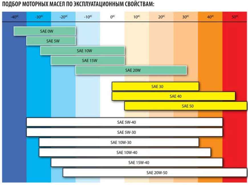 Для подбора смазки используется таблица с распределением температурных диапазонов по стандарту SAE.