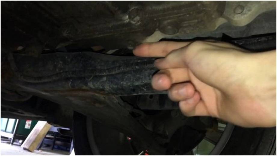 - Автомобиль устанавливаем на смотровую яму и снимаем защит двигателя для доступа к сливной пробке;
