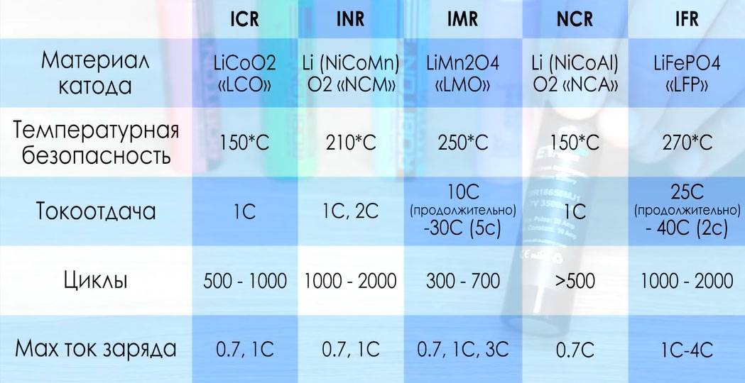 Есть еще разновидность INR – сюда входят в равных долях кобальт, никель и марганец.