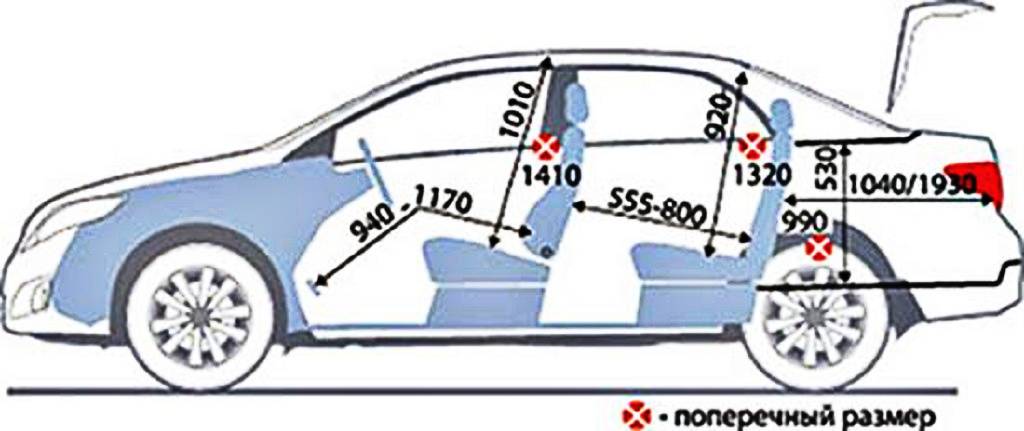 | Размеры между спинками заднего и спинками кресел переднего ряда | от 555 и вплоть до 880 мм |
