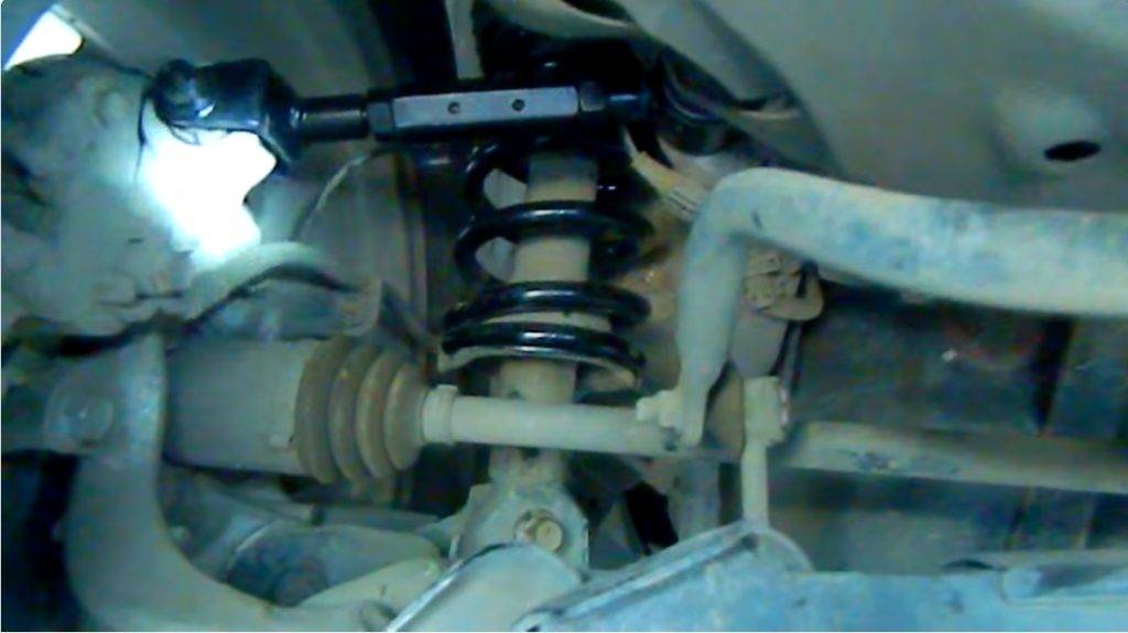 Для того, чтобы установить проставки на машину своими руками, будем действовать по следующему алгоритму. Сначала достаем домкрат, устанавливаем его под переднюю часть машины и приподнимаем ее. Теперь необходимо снять колесо, отсоединить стойку стабилизатора. Фиксируем нашу проставку на болты (придется взять более длинные, поскольку старые не подойдут). Собираем конструкцию в обратной последовательности. Чтобы открутить закисшие болты Вам может понадобится WD-40.