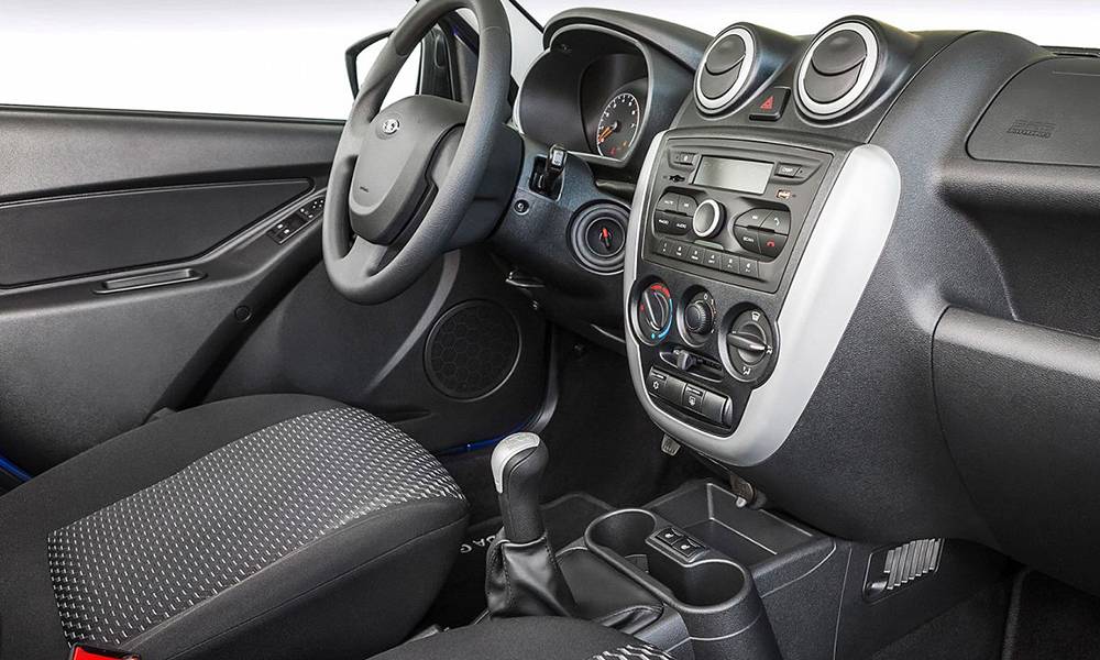 Простора в салоне много, сядут нормально пять человек (водитель и 4 пассажира), все-таки кузов от Калины седан, а там с простором все в порядке.