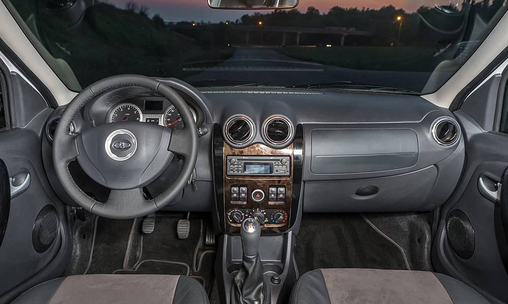 Поскольку Ларгус является адаптированной вариацией универсала Dacia Logan MCV, его интерьер поразительно напоминает логановский. Разумеется, сюда перекочевали и все огрехи в эргономике: расположение кнопок управления стеклоподъёмниками не на дверях, а на центральной консоли, задние тоже умудрились впихнуть между креслами водителя и пассажира, звуковой сигнал расположили на подрулевом переключателе. Наконец, кнопка включения подогрева сидений спрятана так, что найти её можно только на ощупь. Наконец, кнопка включения омывателя ветрового стекла расположена отдельно от кнопки включения дворников.