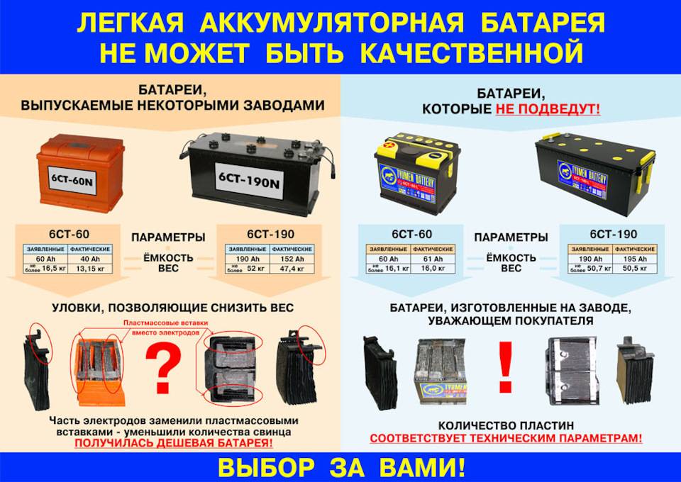 Внимание! За долговечность аккумуляторной батареи отвечает толщина свинцовых пластин, а соответственно и масса самого источника питания. Ниже в ролике эксперт наглядно объясняет, как правильно выбрать новый аккумулятор для автомобиля