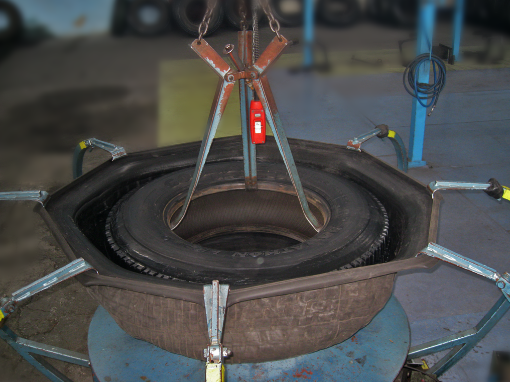 Цель подготовки к вулканизации заключается в том, чтобы придавить протекторную ленту к каркасу шины и обеспечить идеальное соприкосновение поверхностей. В специальном станке на шину надевается конверт, а в шину вставляется камера и диск. Чтобы придавить протекторную ленту к каркасу из конверта откачивается воздух (отрицательное давление), а камера внутри шины накачивается до определенного давления.