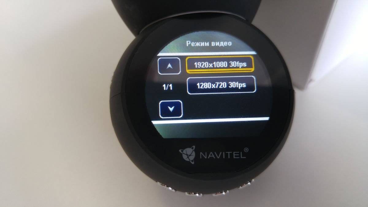 NAVITEL R1000 имеет необычный формфактор в виде усеченной сферы, где с одной стороны органично продолжает форму шара широкоугольный объектив (угол обзора 165 градусов), а с другой — LCD экран (1,2 дюйма с разрешением 240×204 точек). Кнопки управления расположены под монитором, с левой стороны кнопка включения и индикатор состояния, а с правой — слот для карты памяти и разъем для подключения кабеля питания и передачи данных.