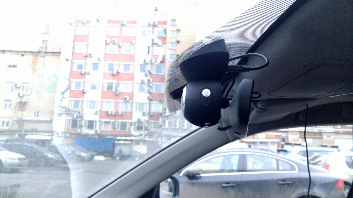 После того, как все установлено, остается только разместить камеру в магнитном кредле и повернуть ее в нужном направлении (кстати, снимать можно и то, что происходит в салоне). Запись видео включается автоматически при подаче питания на устройство.