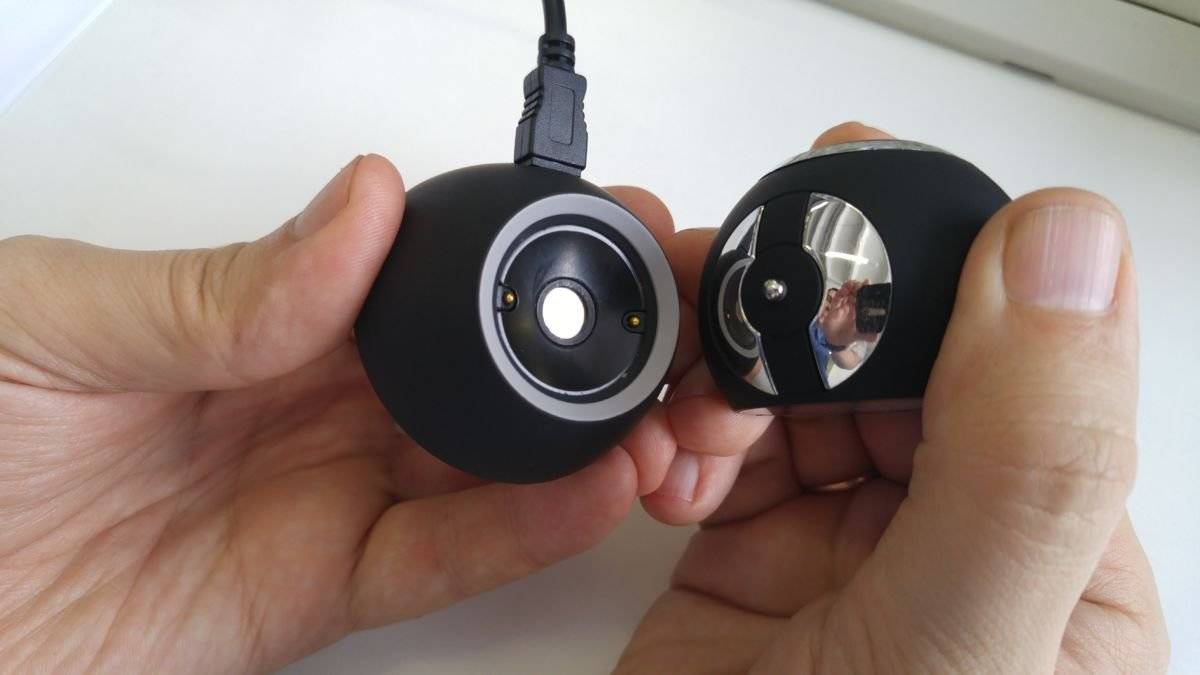 В верхней части сферы производитель разместил контактную пару, повторяющую поверхность сферы. Таким образом, видеорегистратор можно быстро установить на магнитную базу и повернуть его вокруг вертикальной оси в нужном направлении. Без разрыва контакта питания допустимый угол поворота составляет около 90 градусов влево и вправо.